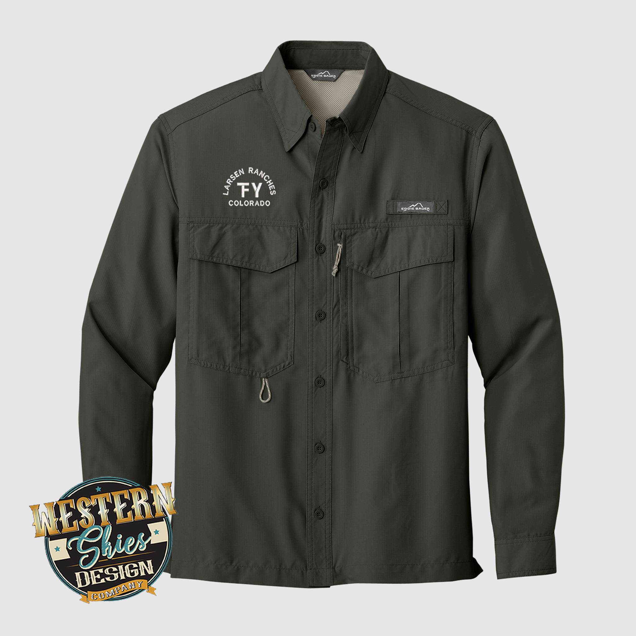 Price INCLUDES your front left chest embroidery. Add you brand/logo and Ranch name and or city/state.