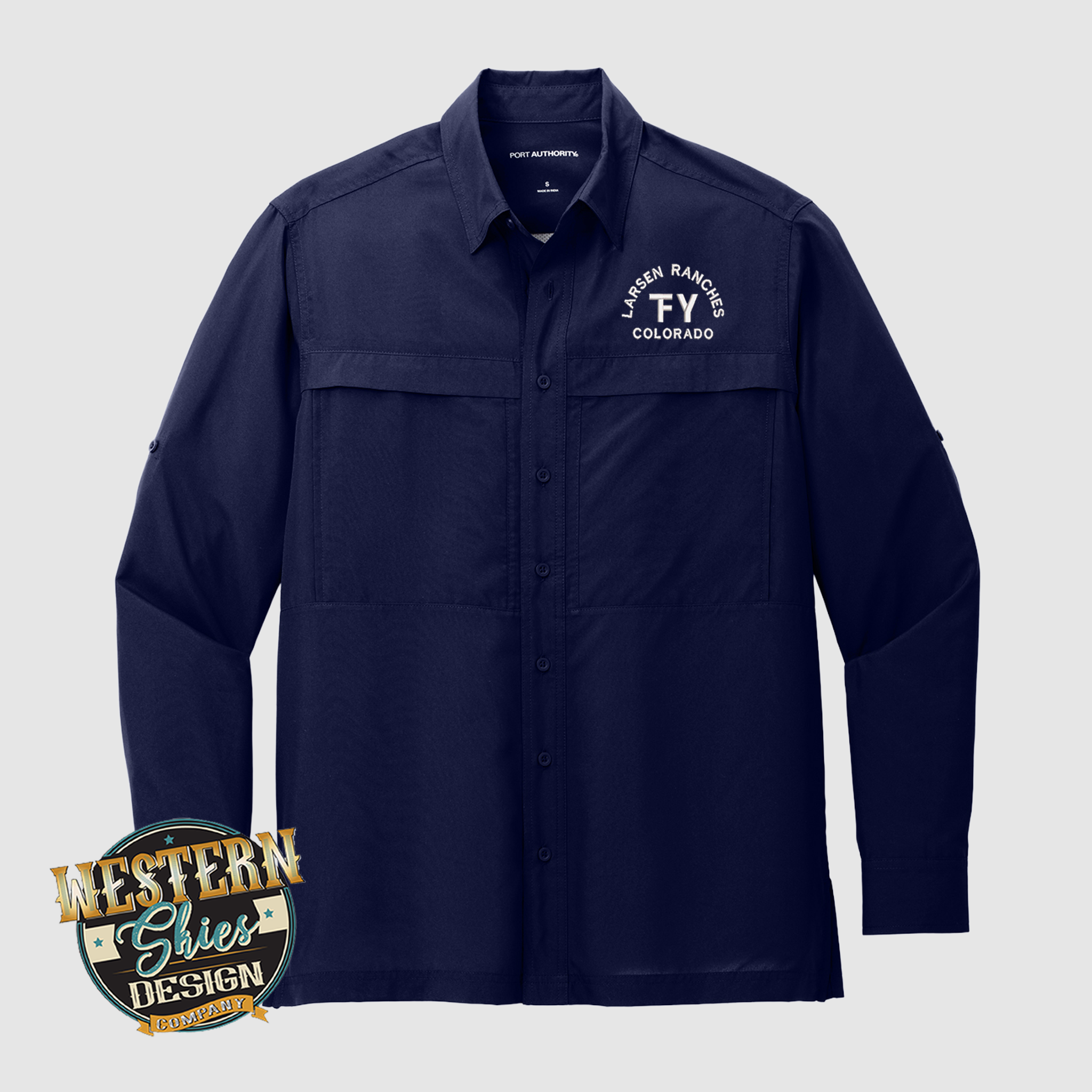 Price INCLUDES your front left chest embroidery. Add your brand/logo and Ranch name and or city/state.